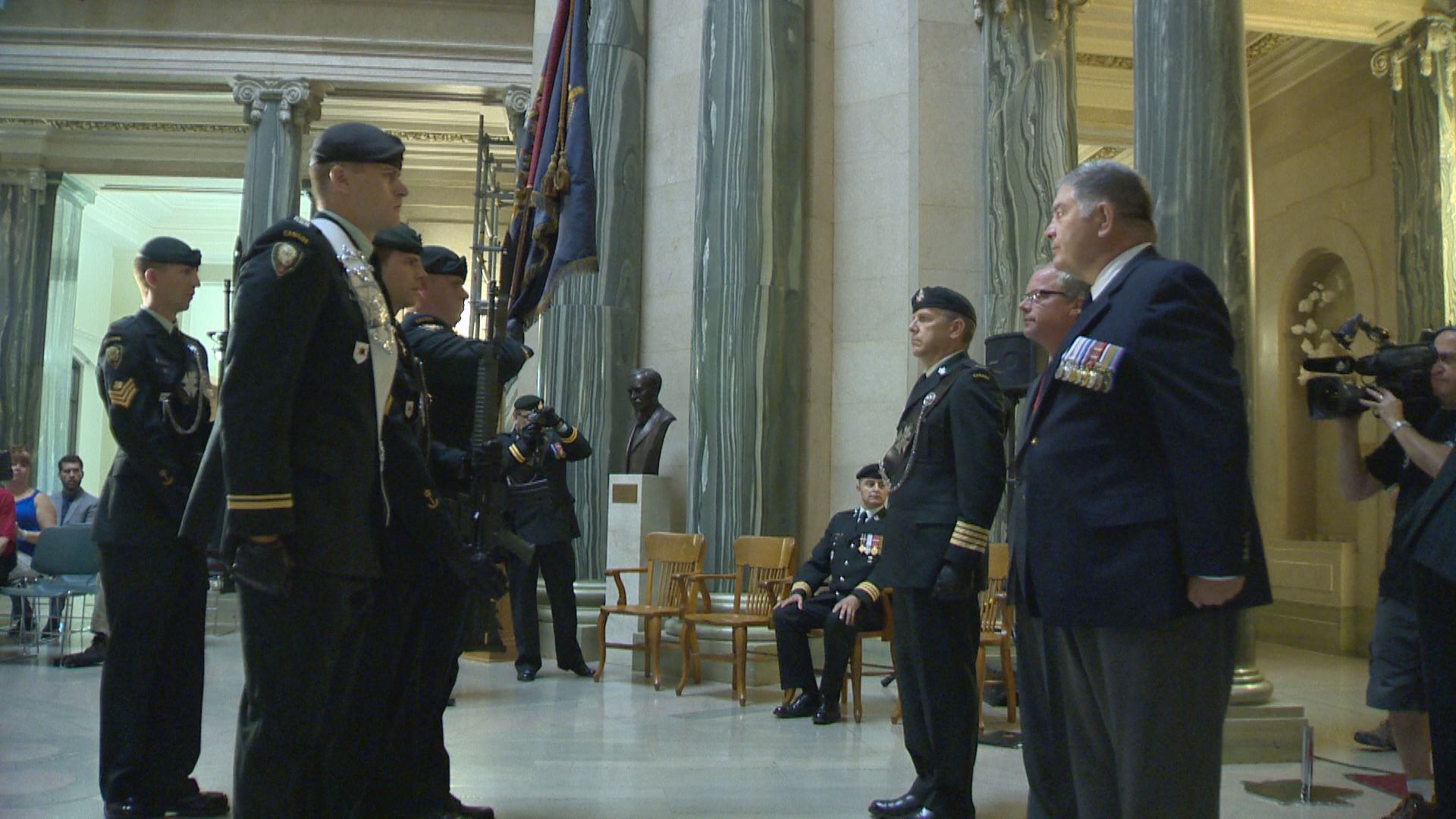 “They continued to provide support to the military in so many different ways, through bond-raising activities, through red cross activities – from women under the dark of night, knitting socks for the soldiers, anonymous soldiers; it truly was a provincial commitment, so today’s ceremony is truly a reflection of that commitment,” said Lt.-Col.Malcolm Young, the 38 Canadian Brigade Deputy Commander.