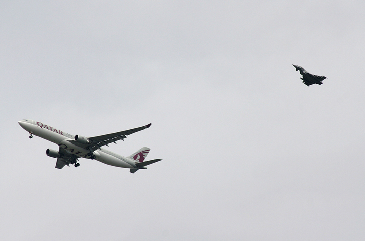 WATCH: Raw video captured from inside the plane and from the ground of fighter jet escort of Qatar Airways plane back to Manchester