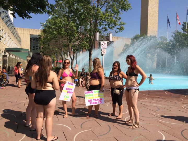 Watch above: Edmonton and people from around the world have been following the story of an Alberta mother who was mocked for baring her belly in a bikini. Wednesday, mothers across the city gathered to show their support. Kendra Slugoski reports.