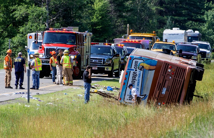On July 21, the bus, carrying 55 passengers and one driver, was travelling south on Interstate 87 about 200 kilometres south of Montreal, when it veered off the shoulder of the highway at around 8 a.m. and rolled over in the median.