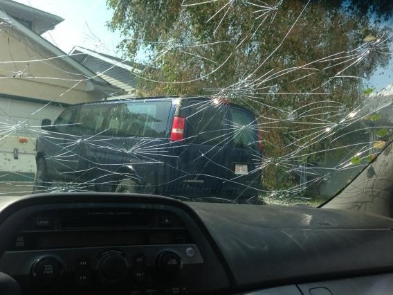 WATCH: Driver’s windshield smashed by hail during storm in Airdrie