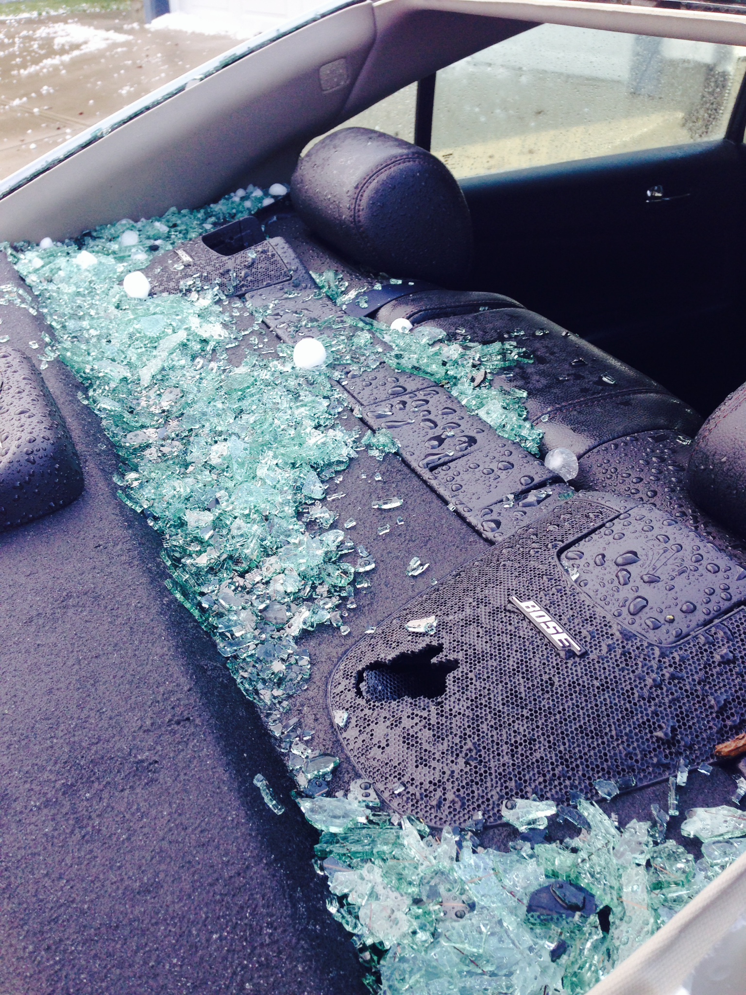 The wet weather caused extensive damage as it traveled through Airdrie, with countless cars suffering broken windshields and severe dents.