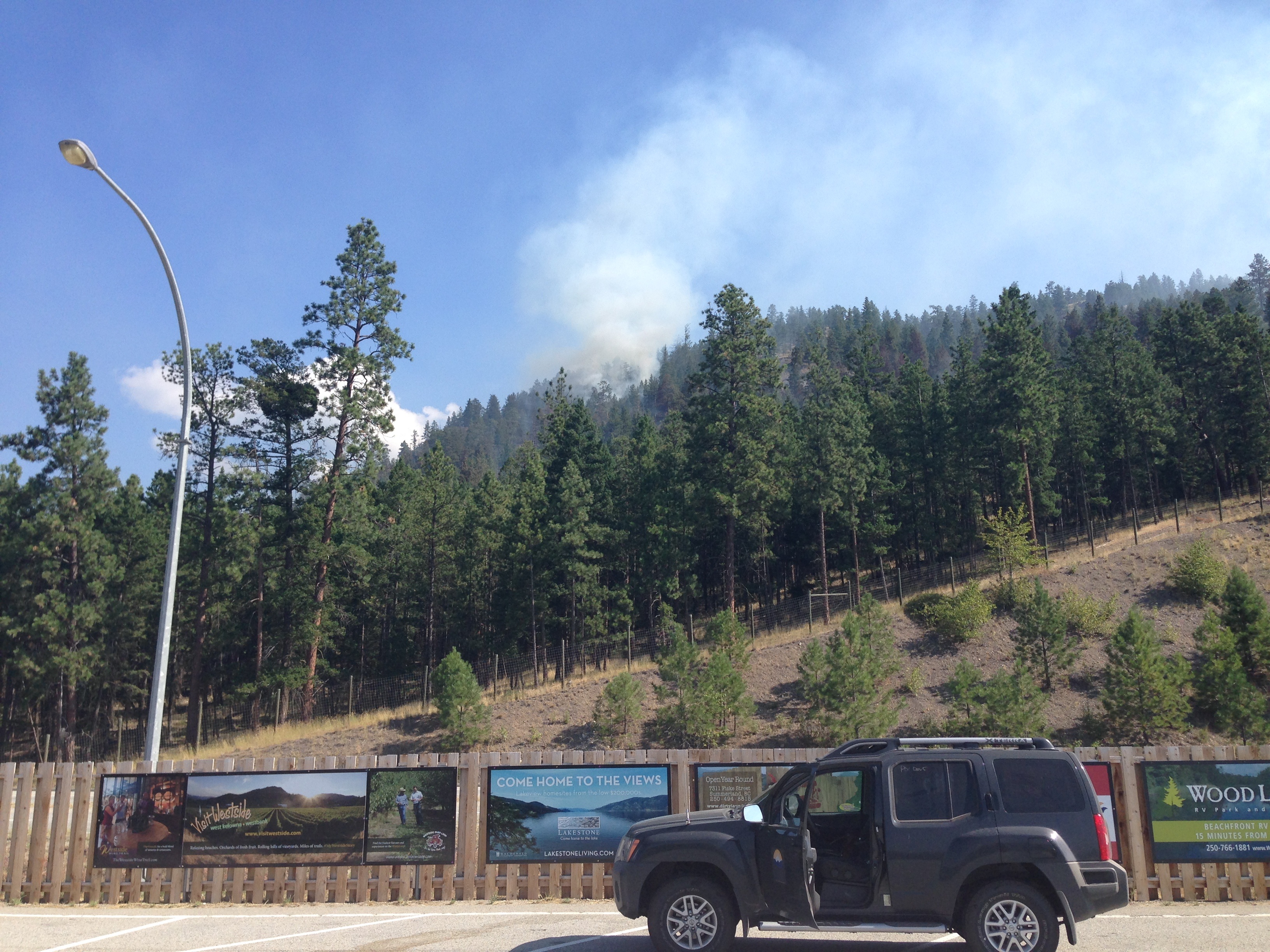 The District of West Kelowna says the Emergency Operations Centre is being mobilized and are asking the public not to call 911 as emergency authorities are aware of the blaze and working on it.