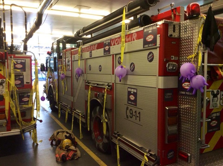 Firefighters, transit workers and police officers have been posting photos of how they have been protesting on a public Facebook page called L’Union des Casques Noirs.
