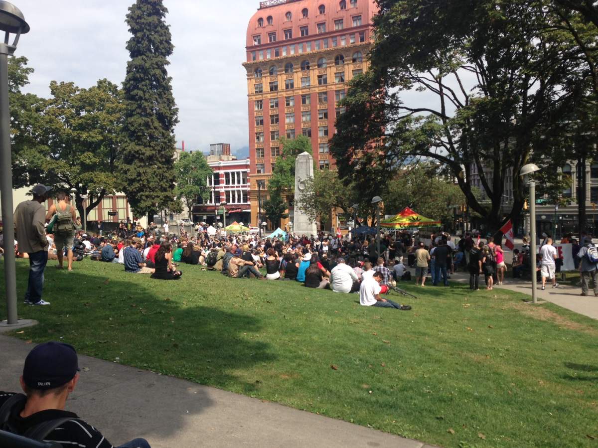 Supporters held a rally at Victory Square on the Downtown Eastside Sunday afternoon.