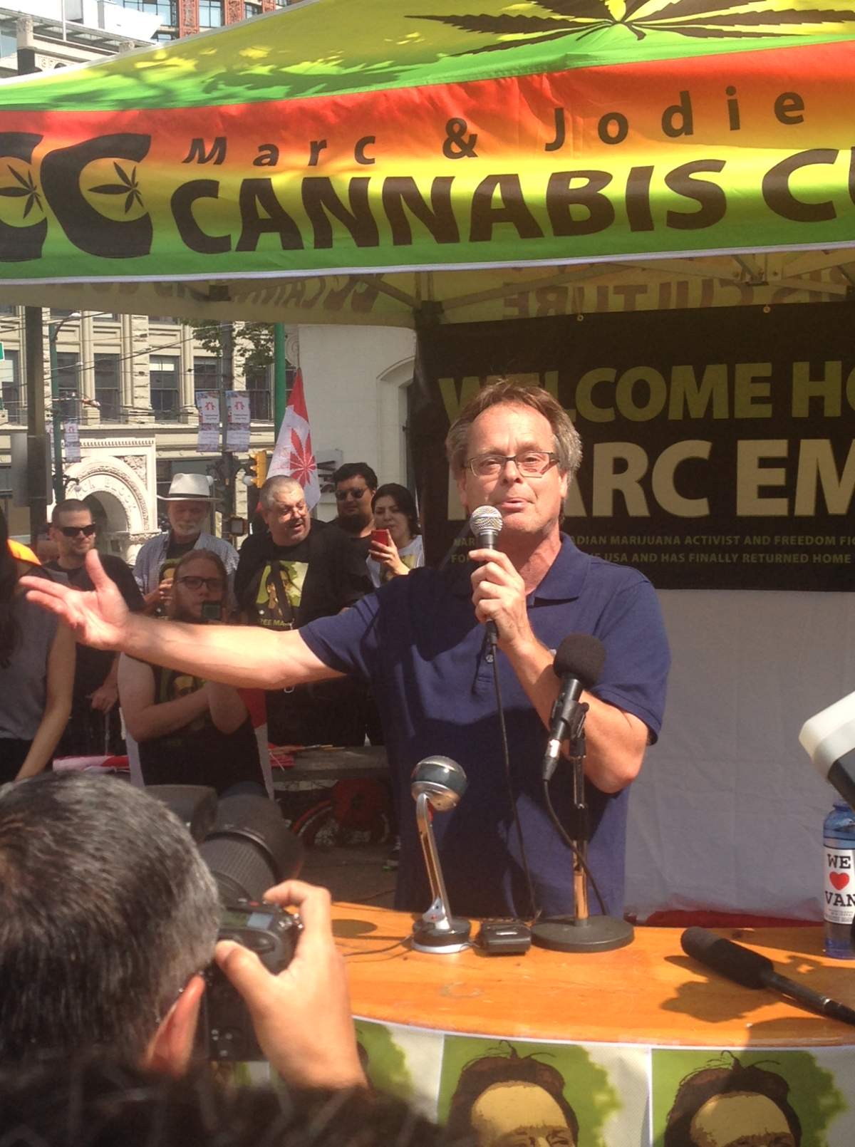 Canada’s “Prince of Pot” returned to Vancouver Sunday to hundreds of supporters.