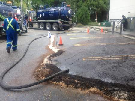 KELOWNA — The Regional District of Central Okanagan (RDCO) is in clean-up mode, after a 1,000 litre diesel spill in its own parking lot. Someone apparently stuck a running hose, pumping water, into a disposal tank overnight according to Andy Brennan with the Regional District of Central Okanagan (RDCO).