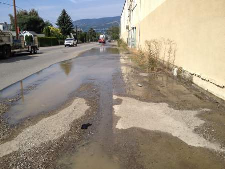 KELOWNA, B.C. – A large water pipe burst at the old fruit co-op warehouse on Clement Avenue sometime Monday morning, where B.C. Tree Fruit operations ceased less than a month ago.