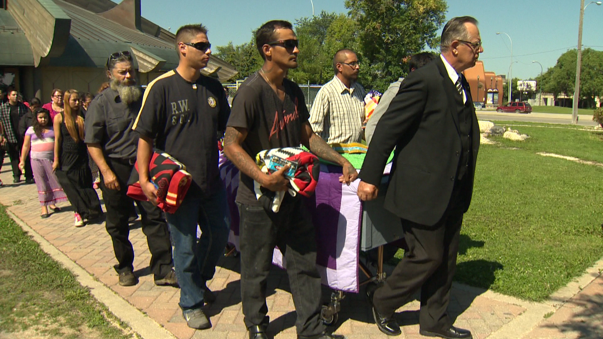 WINNIPEG — A casket carrying a man many in Winnipeg consider a hero was laid to rest Wednesday.