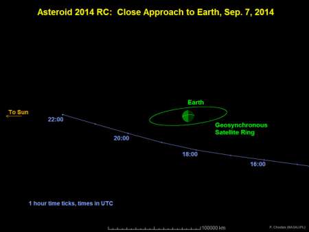 Asteroid 2014 RC was discovered on Aug. 31 by the Catalina Sky Survey in Arizona.