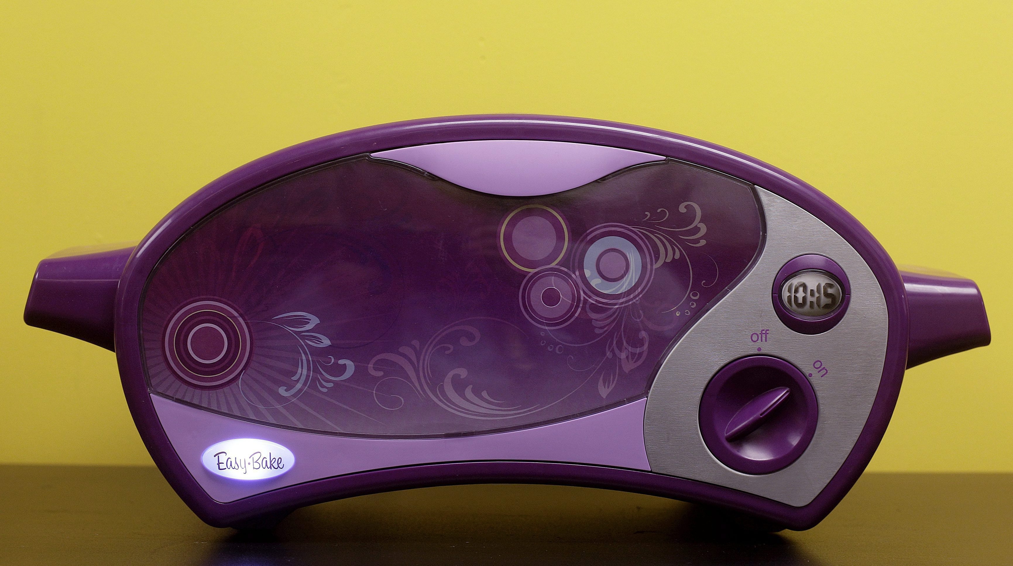The latest version of the famous toy oven first marketed in 1963 with a carrying handle and a fake stove top is now all curves and purple and snazzy graphics. And – perhaps most shocking of all – it comes with a new instruction: No light bulb necessary.