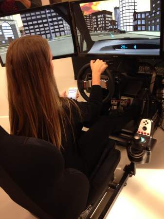 “It was key to us that the user had their own cell phone in their hand. So it wasn’t like a cell phone popped up on screen and that would distract them,” says Kevin Glasier, who helped design the simulator. “It is as close to a real experience as possible.”
