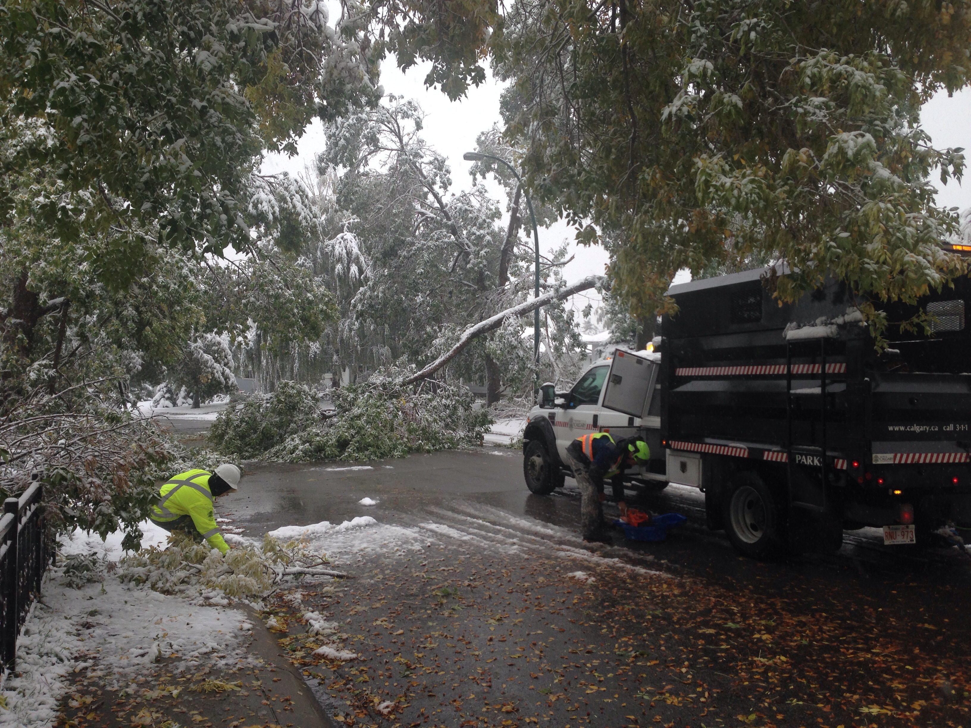 Officials say the Calgary Fire Department has received 1,800 weather-related calls between 12 p.m. on Tuesday and 12 p.m. on Wednesday. As of Wednesday afternoon, 30,000 people were still without power.