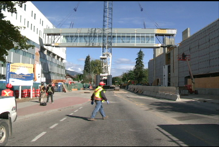 Installation of the bridge, which links the new Centennial and East Pandosy Buildings at Kelowna General Hospital, shut down Pandosy Street between Rose Avenue and Royal Avenue from 6 a.m. to 6 p.m.