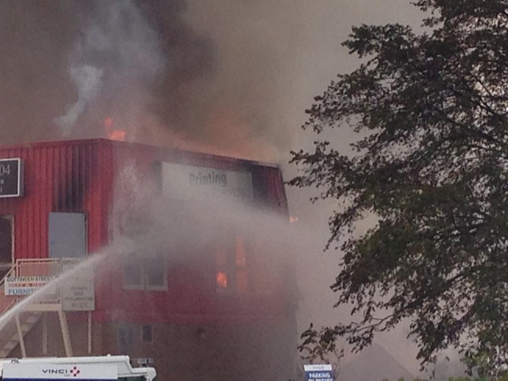 The building engulfed in flames was home to several businesses, including Ravensberg College, a law enforcement college.