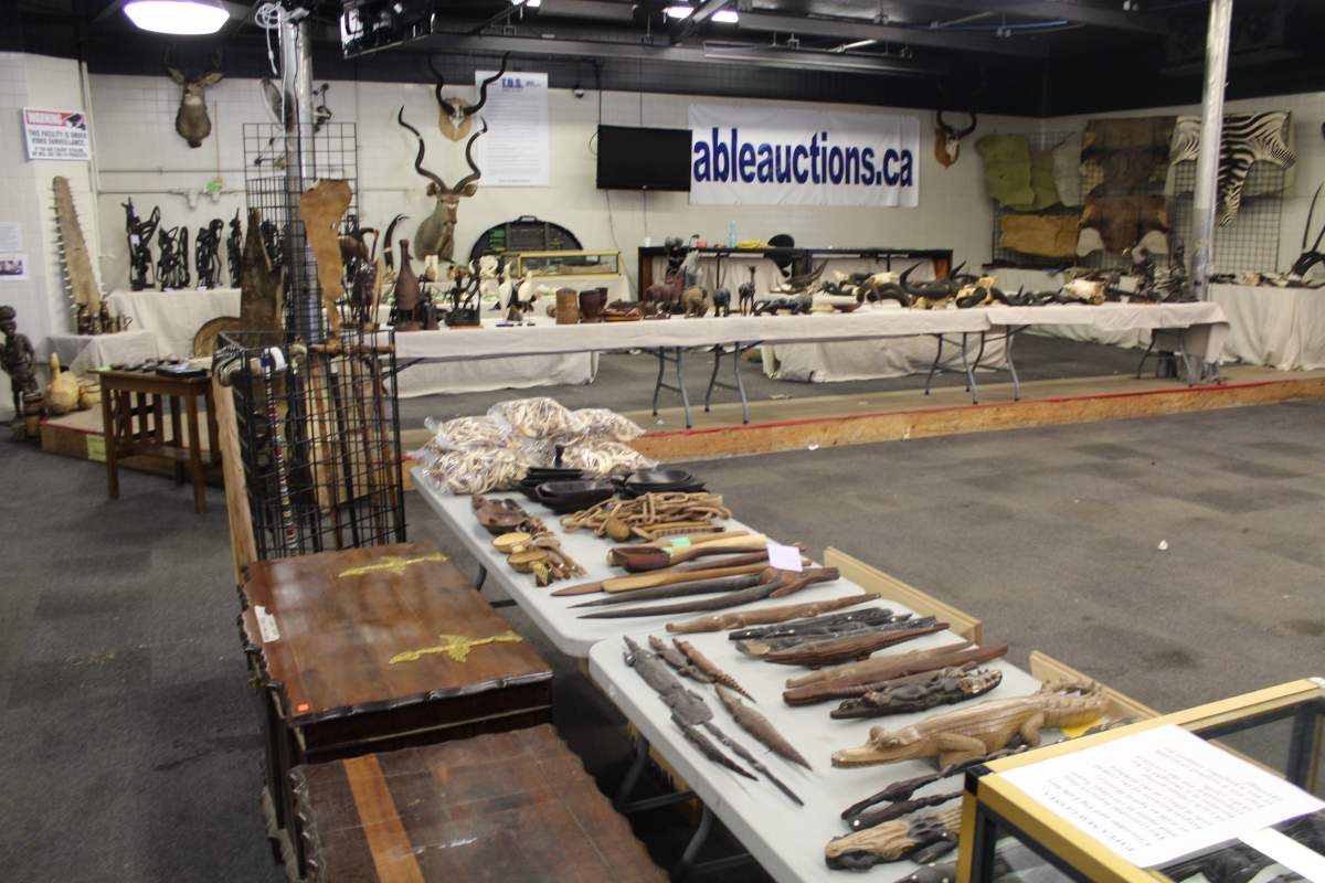 “We don’t see this in Vancouver very often,” says auctioneer Tyler Olson. “Everything from zebra skins to a 57-inch horn Kudu shoulder mounted to carvings of all shapes and sizes, it’s quit spectacular.”
