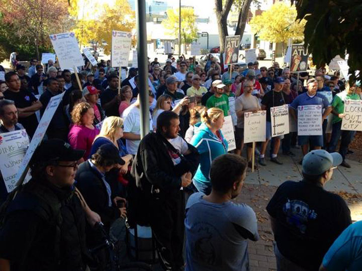 Prior to the meeting, approximately 200 members of ATU 615 rallied outside city hall.