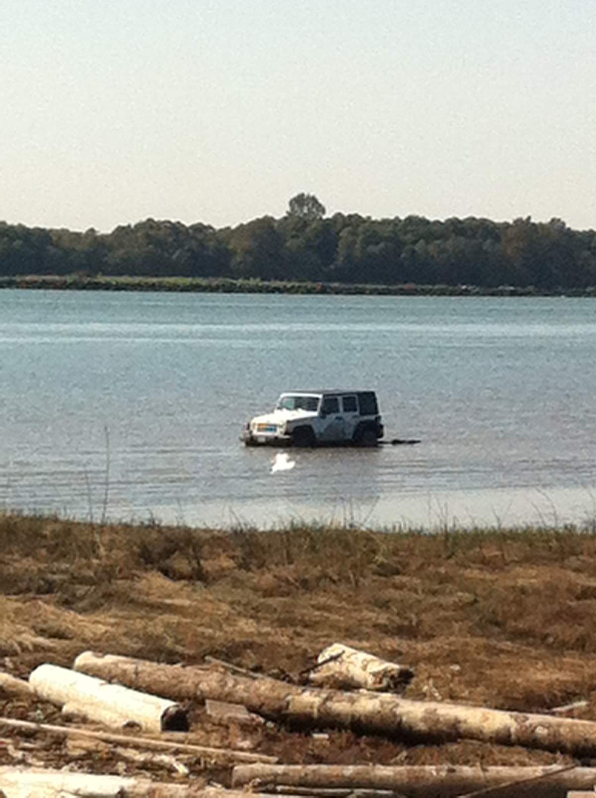Photos of the submerged Jeep went viral on social media.