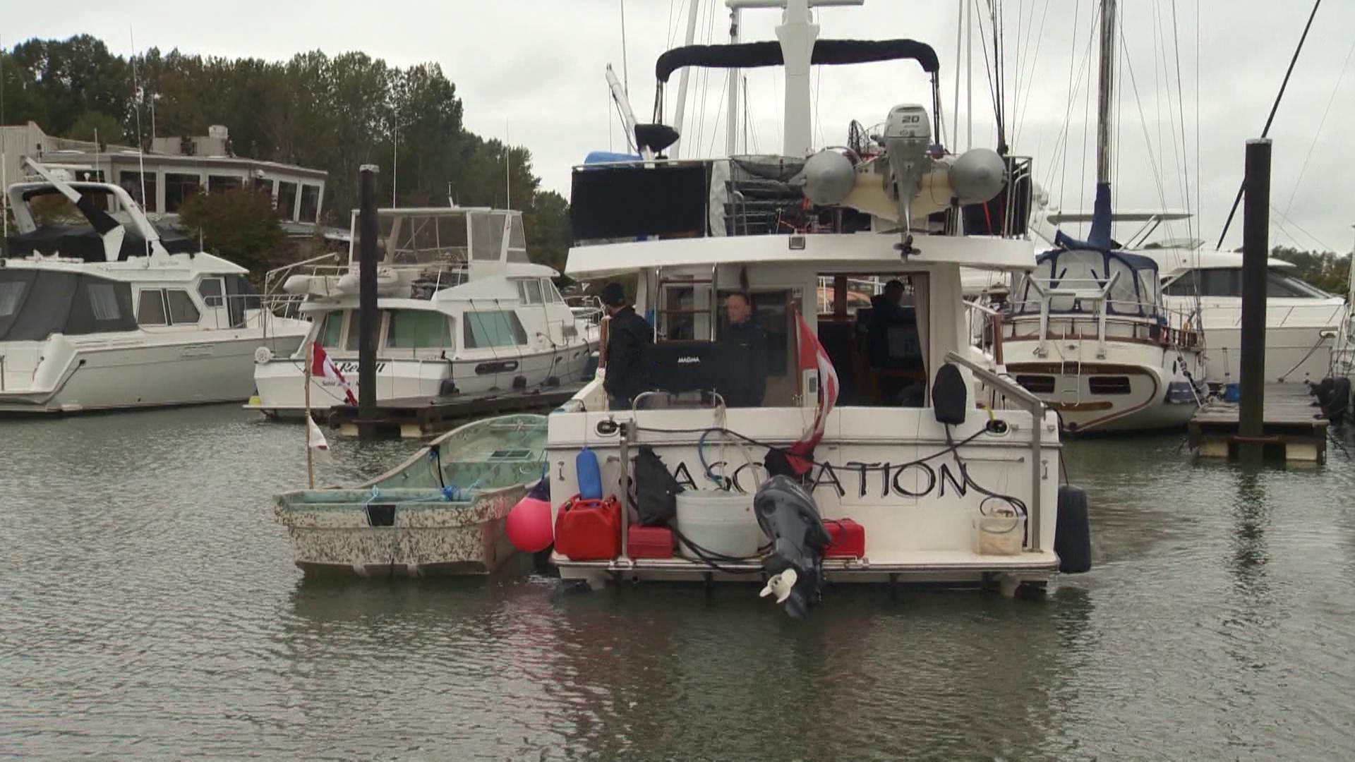 A woman who found a boat she believes is from the 2011 Japanese tsunami off the northern B.C. coast arrived in Delta Friday with the boat in tow.