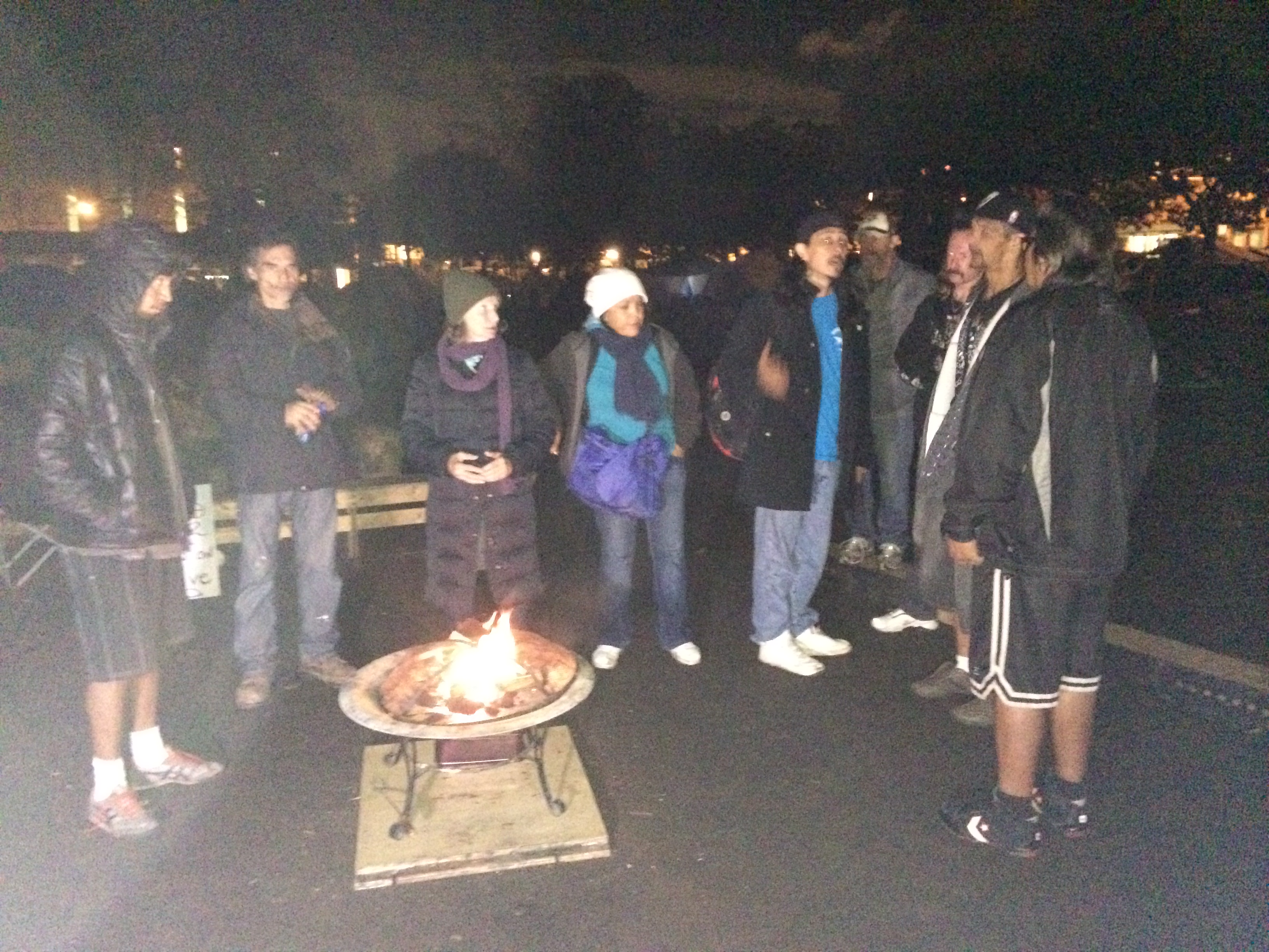 Hunka says many campers are very welcoming. On Tuesday night they lit a sacred fire in the middle of the camp, which keeps the campers warm and is a meeting place. Most nights, no drugs, alcohol or swearing is allowed around the fire.