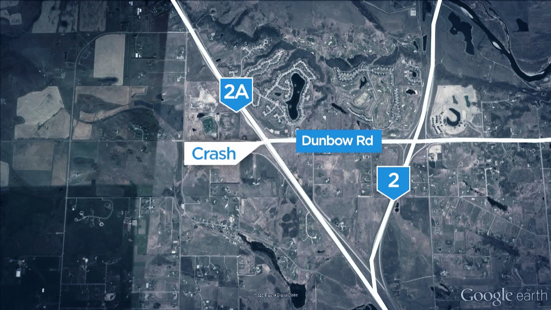 RCMP rushed to a collision at the intersection of Highway 2A and Dunbow Road around 9:15 p.m.