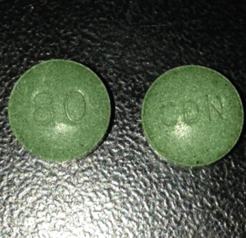 The 4,700 tablets were seized from two locations in Surrey. The pills are a greenish marbled colour and have ’80’ imprinted on them.