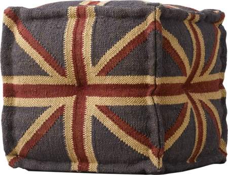 Restoration Hardware has a Union Jack upholstered cube pouf that packs a mod graphic punch but would also be at home in a traditional setting.