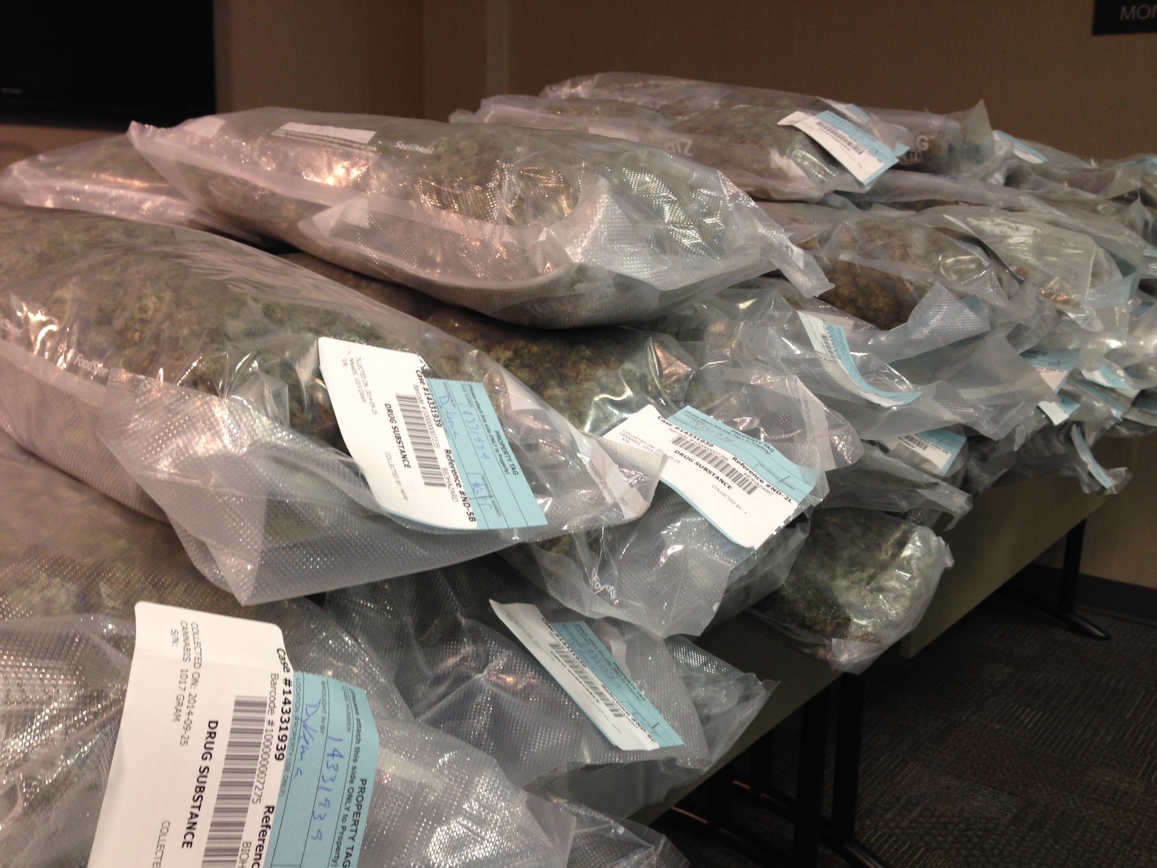 Officers discovered about 120 pounds of pot inside two vehicles stopped in a northwest parking lot last Thursday.