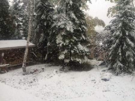 Amanda Buhse tweeted these pictures of snow falling on Brereton Lake, east of Winnipeg in the Whiteshell.