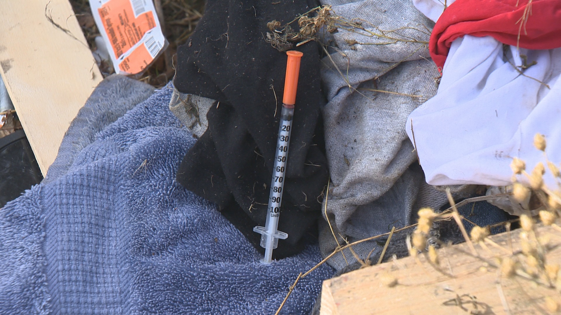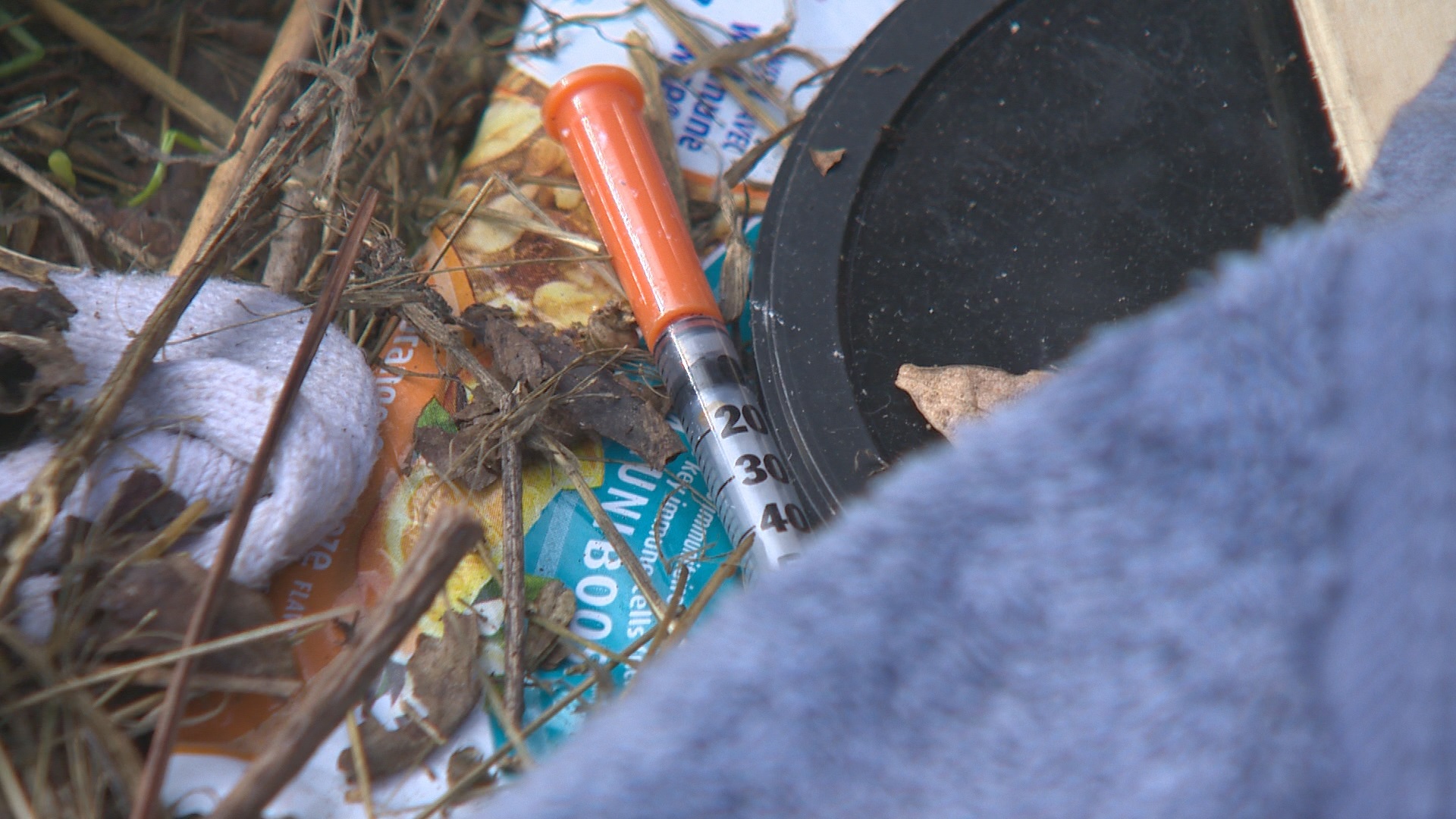 However, they missed some of the needles scattered amongst the wide swath of discarded items.