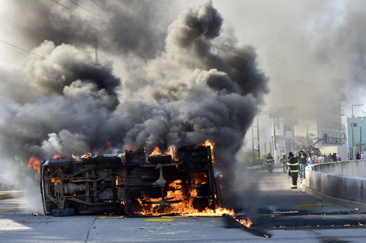 AP photographs showed smoke billowing from the government building in Chilpancingo, the capital of Guerrero, and flames licking from office windows. Firefighters battled the blaze.