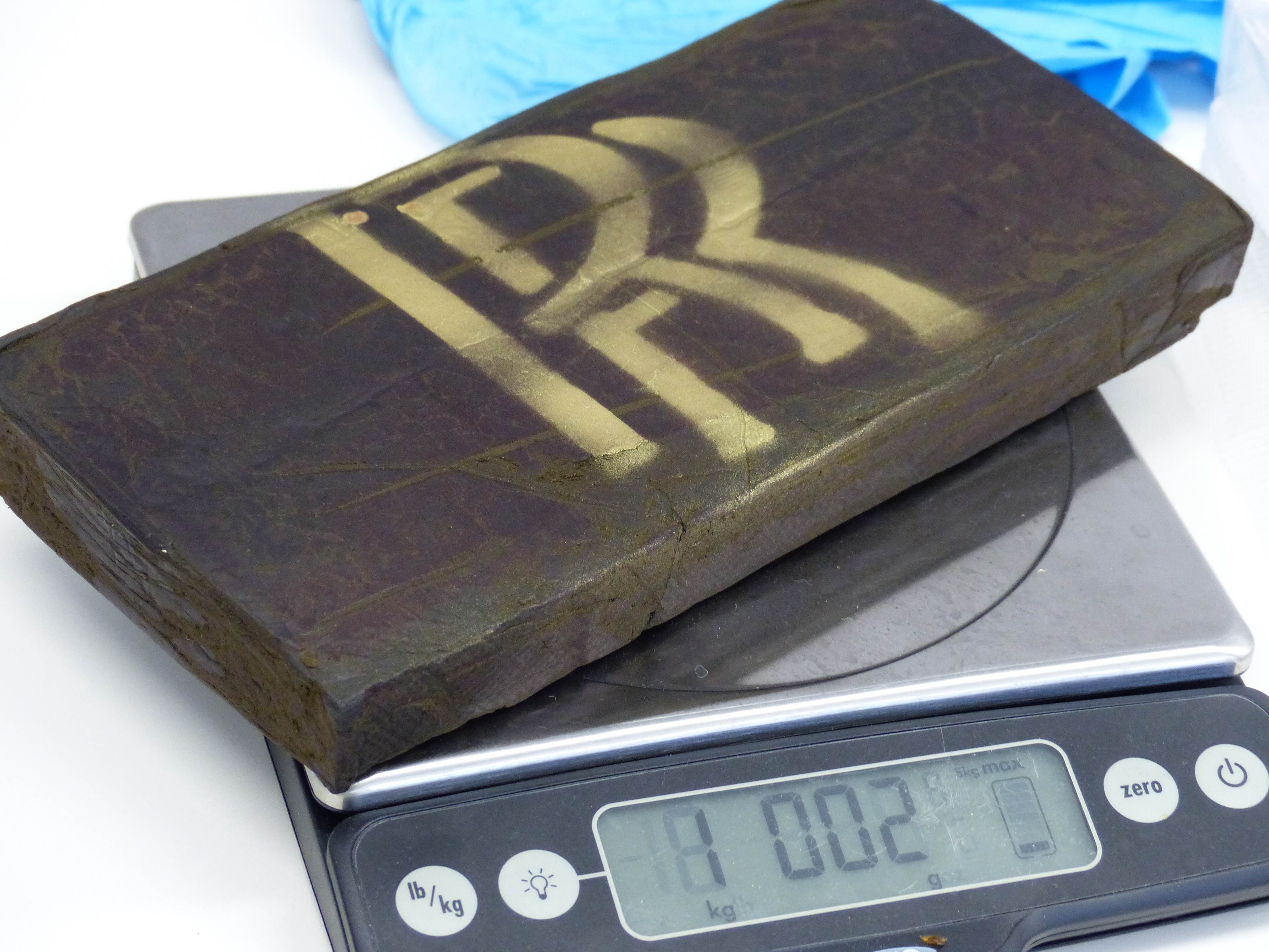 The hashish was packaged and pressed into 30 one-kilogram bricks, was seized along with six pounds of marijuana and $5,000 cash.