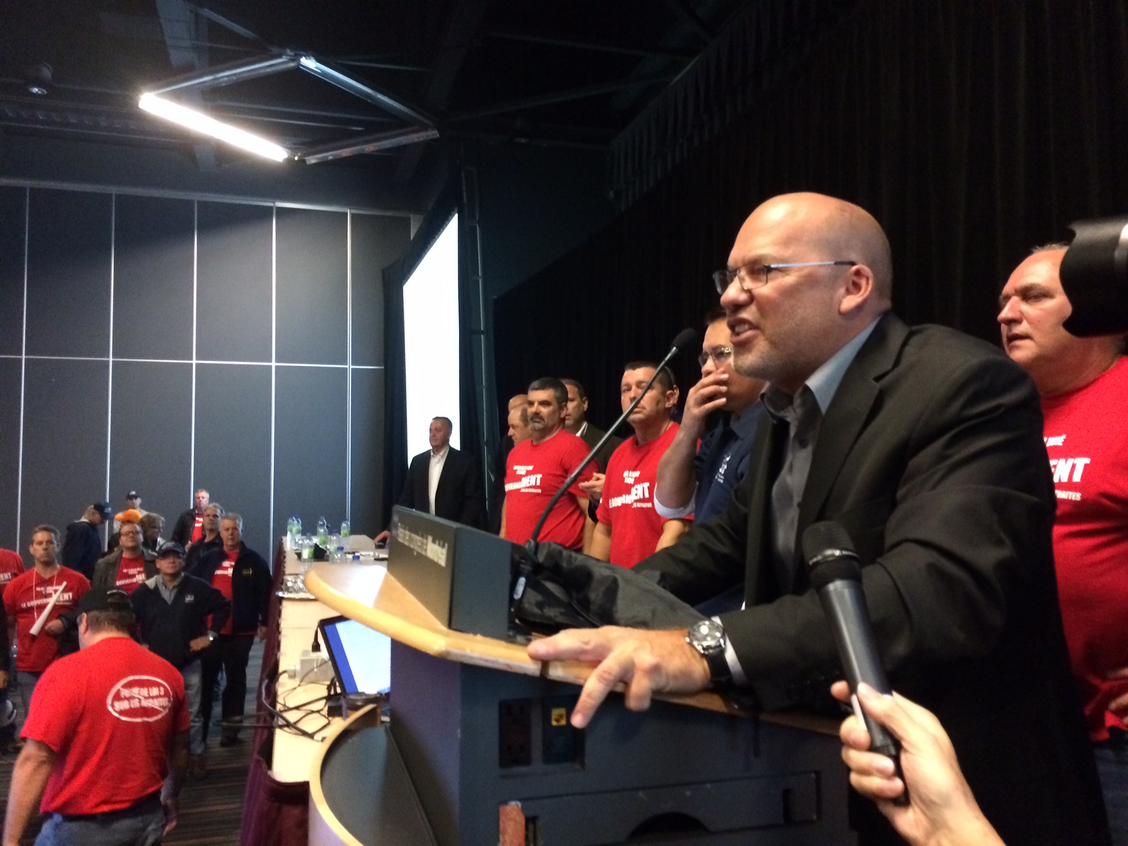 “Do you think that the taxes will go down because we lose working conditions? This is bulls**t. This is not true,” Marc Ranger, the public sector union leader said.