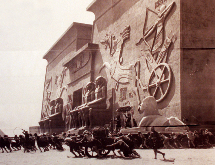 The giant imitations of an ancient Egyptian scene were constructed more than 90 years ago for the silent black-and-white classic movie The Ten Commandments.