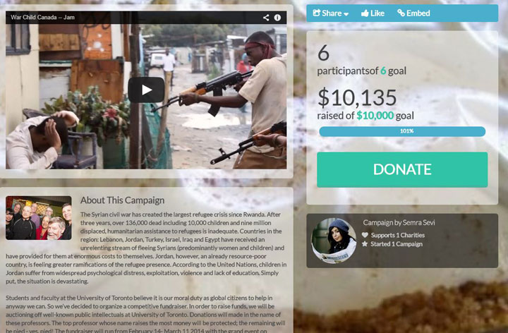 Earlier this year, professor Paul Kingston and Semra Sevi, a Masters student in Political Science at the University of Toronto, created the crowdfunding campaign ‘Pie a Prof, Educate a Child’ that aimed to help War Child Canada provide children fleeing the civil war in Syria with access to support and education.