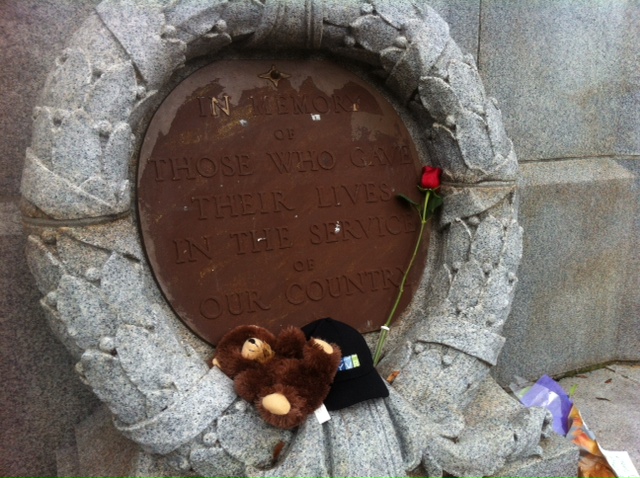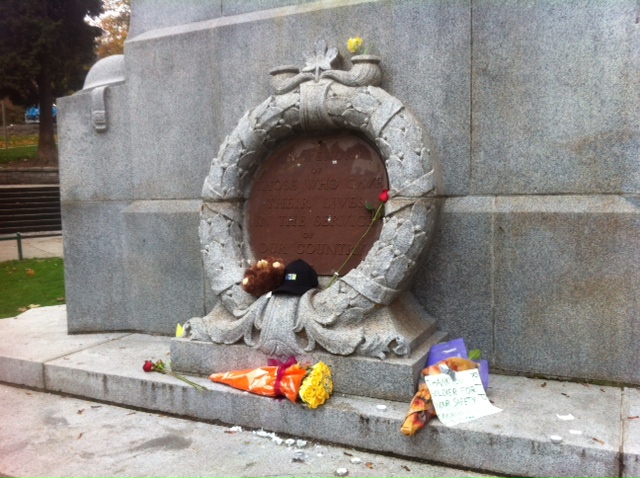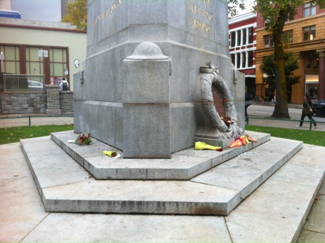 Flowers, messages of condolence and teddy bears were also being dropped off at the Cenotaph in Vancouver this afternoon.