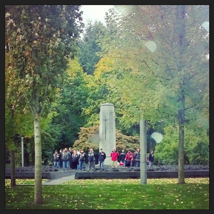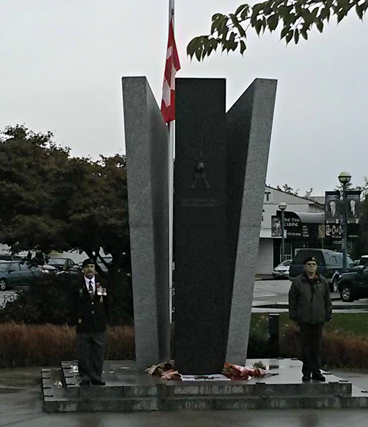 In Port Moody, former tank gunner Scott Mayert stood in the rain to send a message that “Canada is strong and proud and we won’t be afraid of attacks like this. It’s the least I could do.”