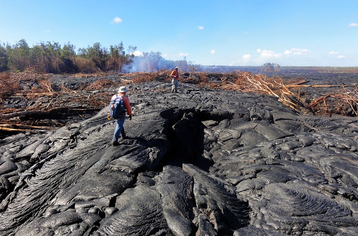 Sporadic suspensions in the lava’s movement gave emergency crews time to work on building alternate routes to town in the event the flow covers the main road and highway.
