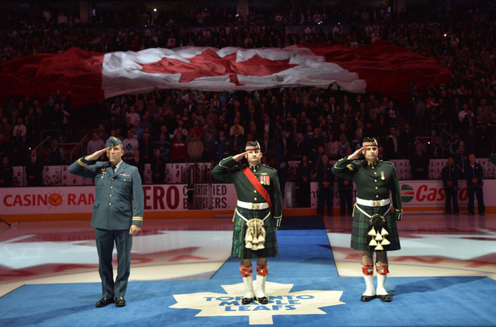 WATCH ABOVE: Sens, Habs and Leafs pay tribute to fallen soldiers with passionate “O Canada.”