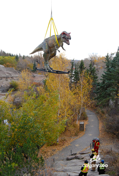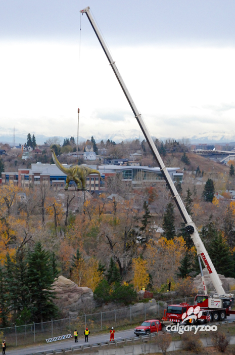 CALGARY- In case you were wondering why there was a tyrannosaurus rex hanging over Memorial Drive Sunday morning, a giant delivery was made at the Calgary Zoo!