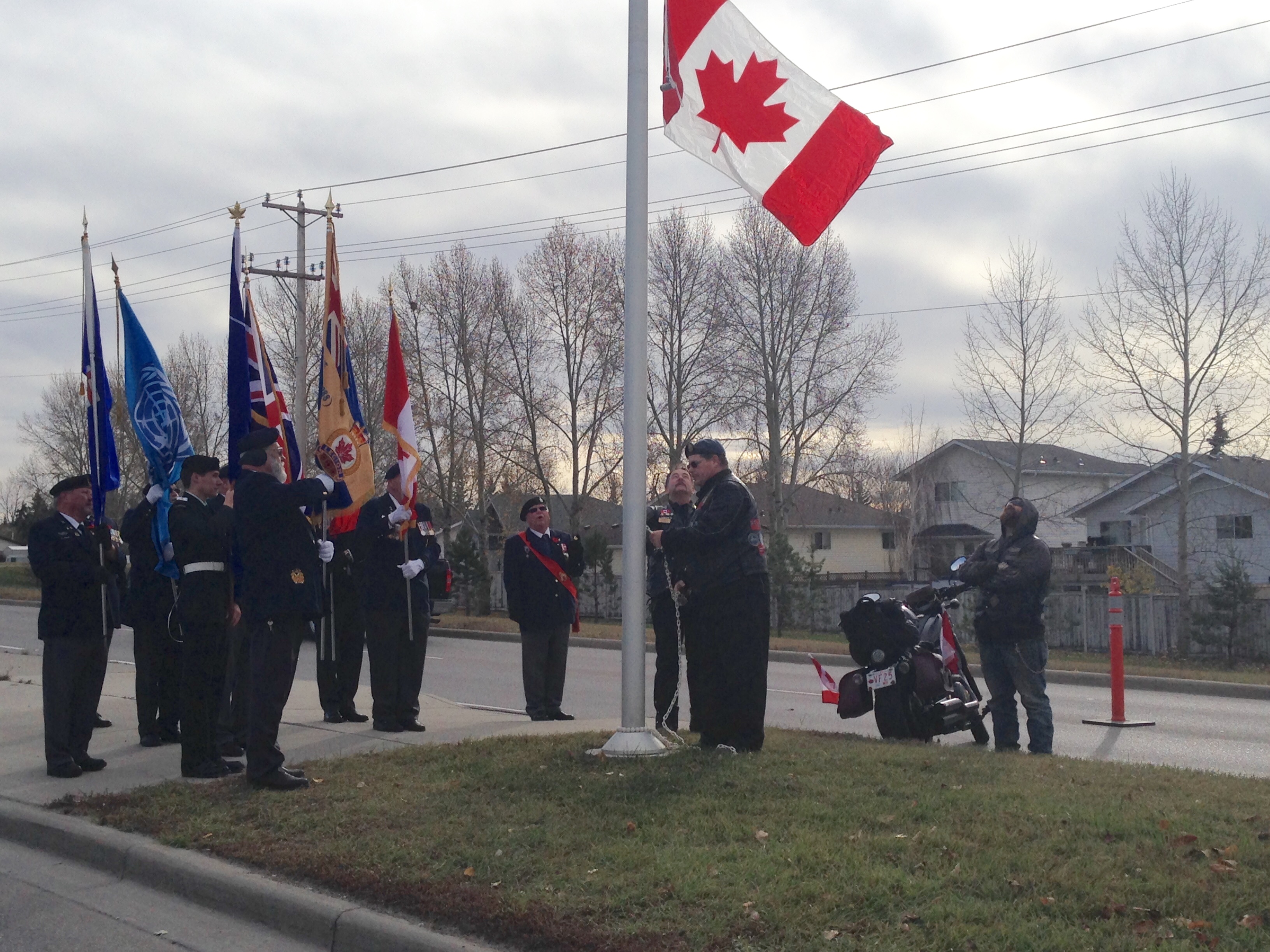 Sunday morning, about 100 people gathered in Airdrie to erect crosses along Veterans Boulevard and a parade of motorcycles delivered symbolic cargo.