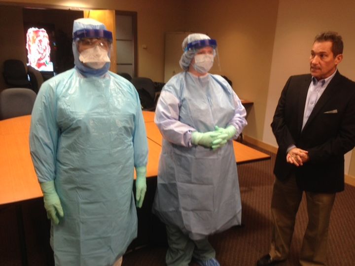 The masks and gowns for health care workers ensure there is no exposed skin, Talbot said.