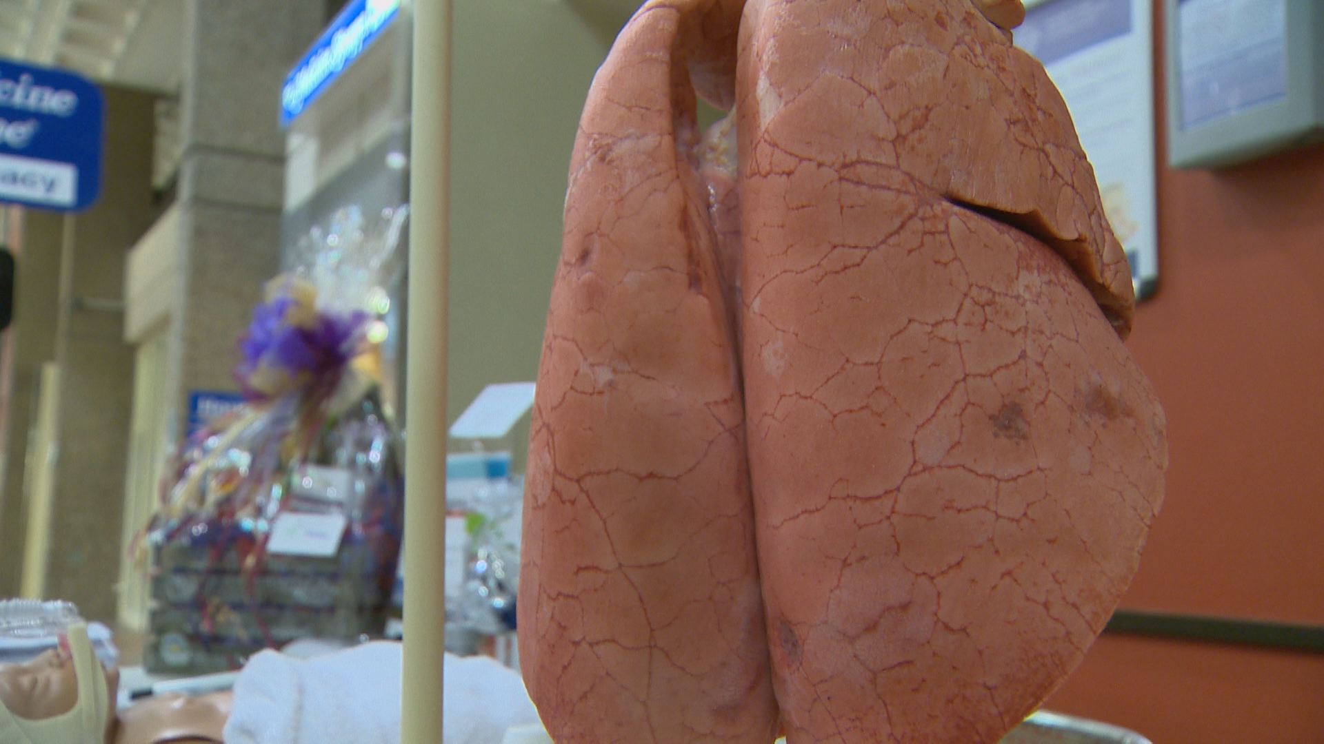 “The reason we use the pig lung is the anatomy of it is almost the same as the human lung so it gives us a really good idea of a display of what the human lung actually looks like and how the human lung expands with each breathe we take,” said Jeffery Dmytrowich, a respiratory therapist for the Saskatoon Health Region (SHR).