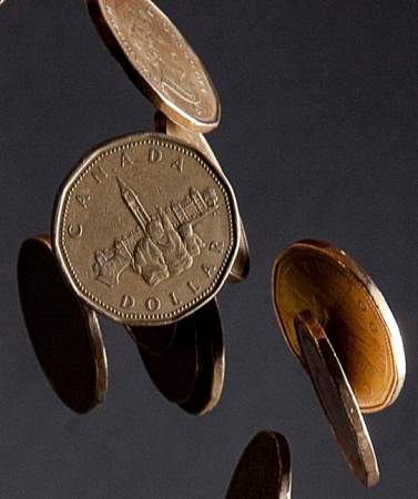 The loonie fell 0.41 of a cent to 87.64 cents US, its lowest close since July 2009.