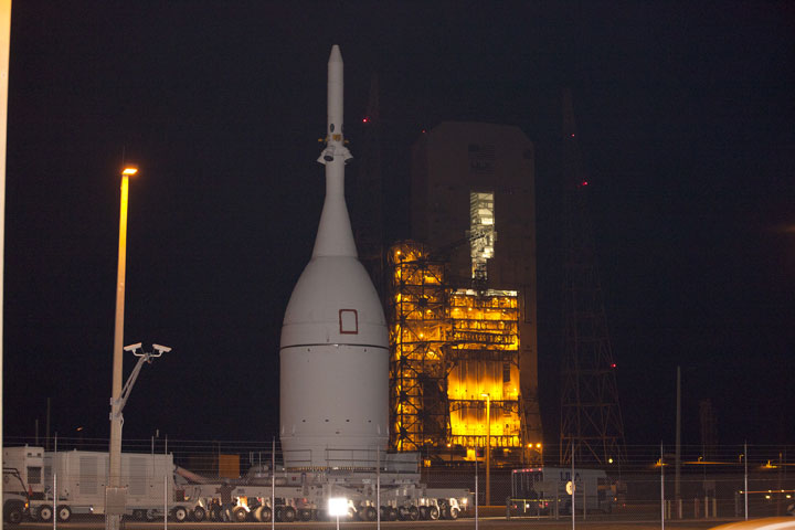 Orion reached the Cape Canaveral Air Force Station Space Launch Complex 37 at 3:07 a.m. EST Wednesday.