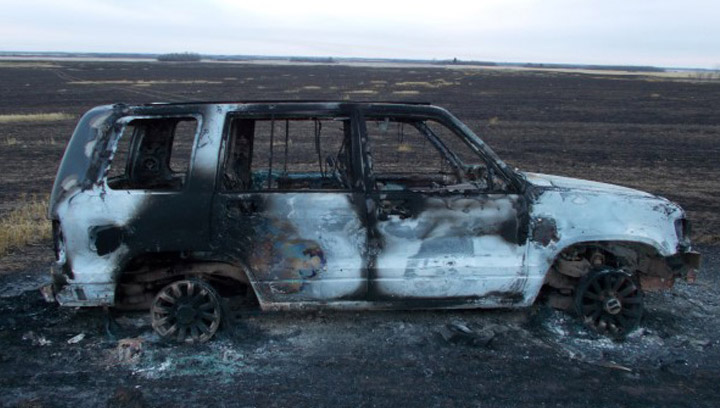 KELVINGTON, Sask. – Police are looking for the culprits who stole an SUV and then set it on fire.