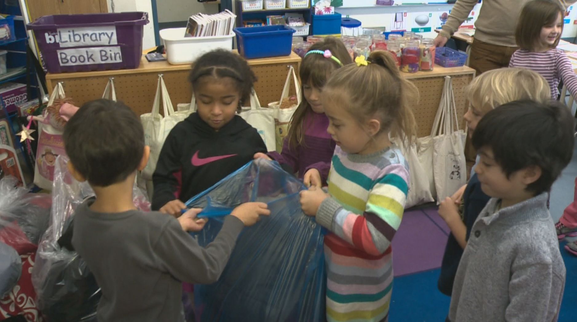 “I want to help kids so they would stay warm,” said six-year-old student Emily Shaw. “I feel happy doing this.”