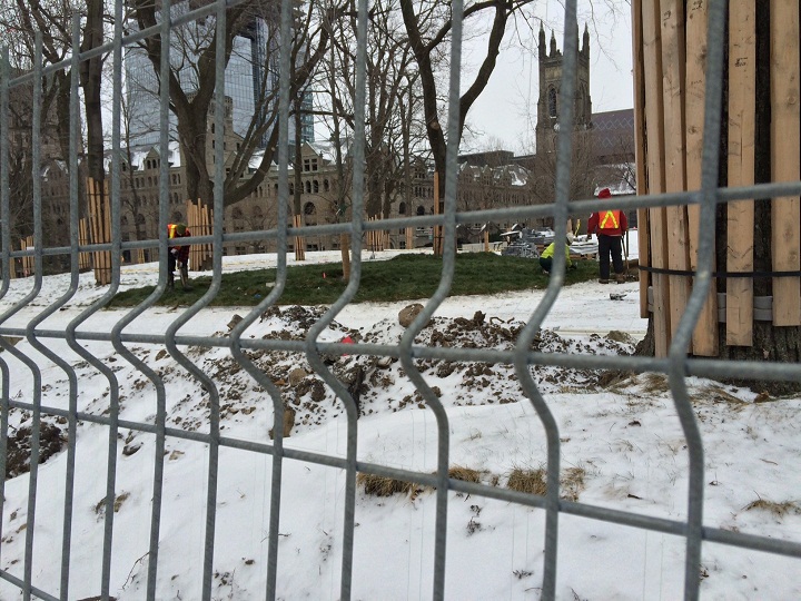 MONTREAL – With the sudden drop in temperatures, Montrealers walking by Place du Canada Thursday stopped in their tracks to witness a bizarre sight: big patches of green amid the frost, and city workers laying down sod.