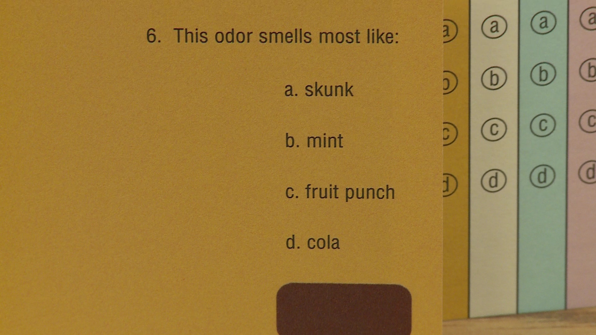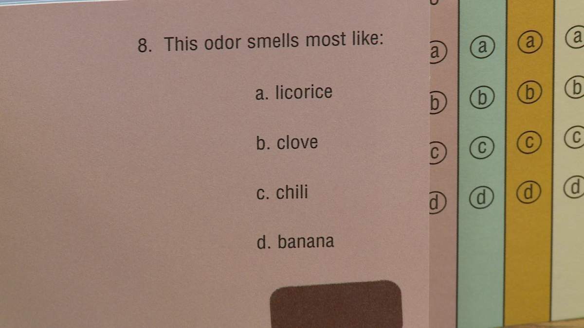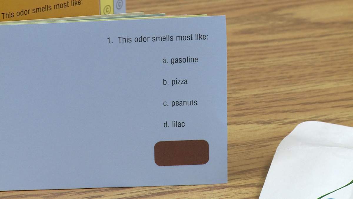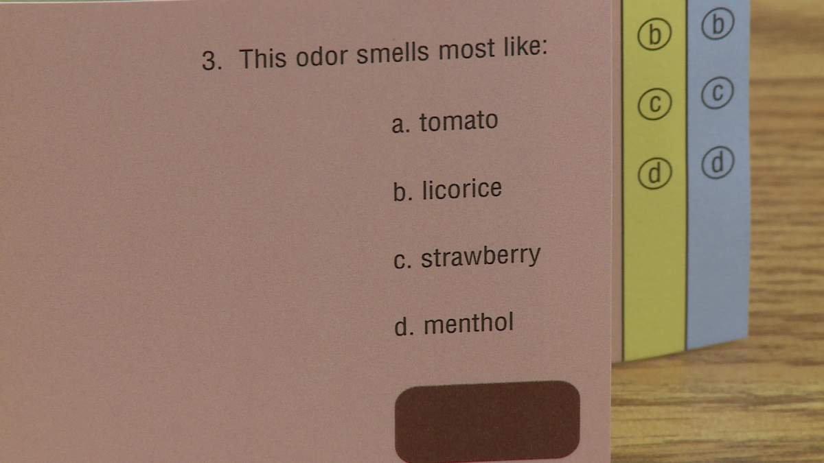 Good said the study is being conducted using a scratch and sniff test. Participants are given 40 scratch and sniff strips and they must identify the correct smell of each. Each page of scratch and sniff strips also has four potential answers for participants to choose from.