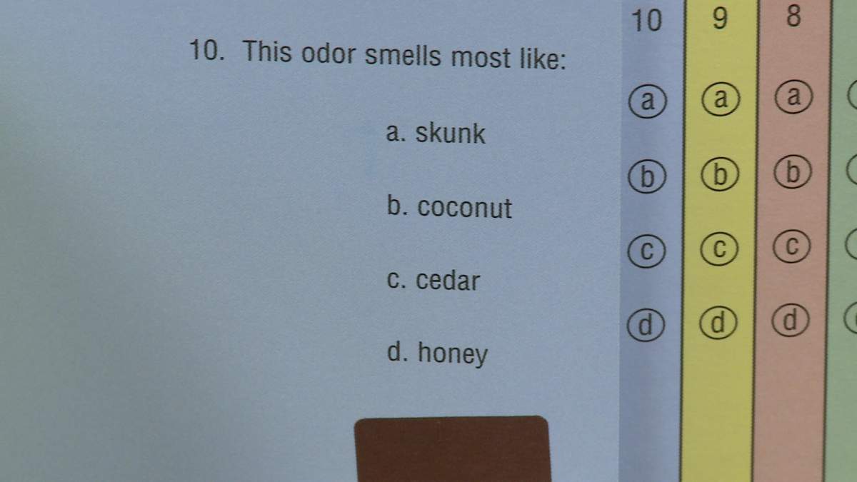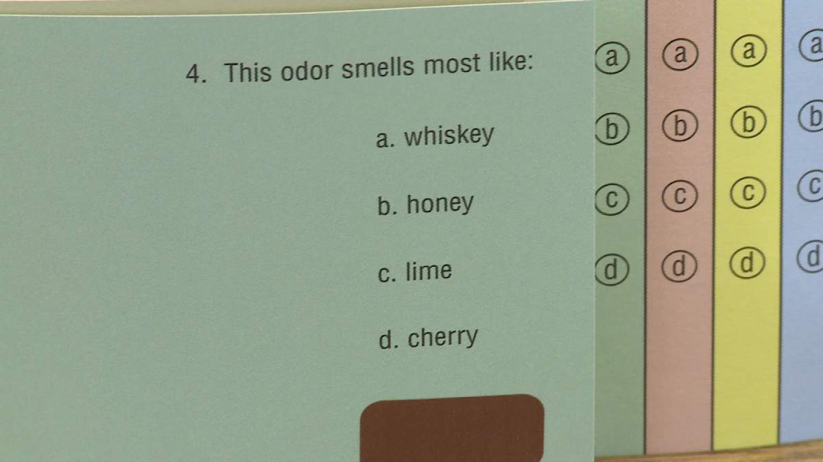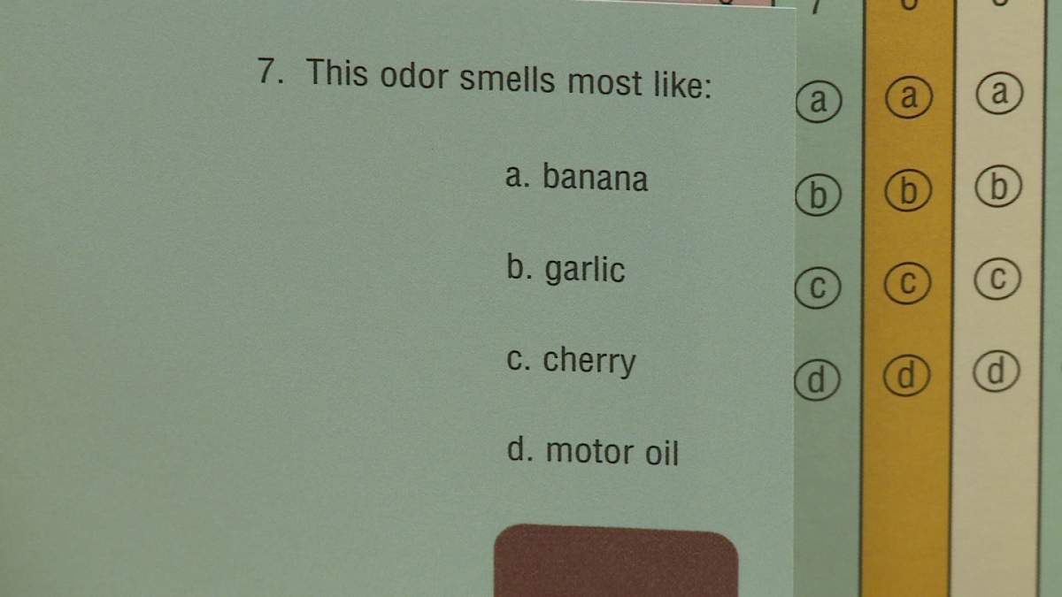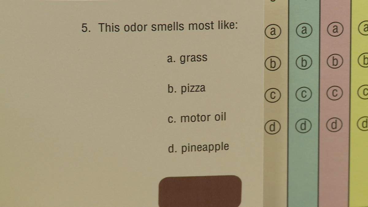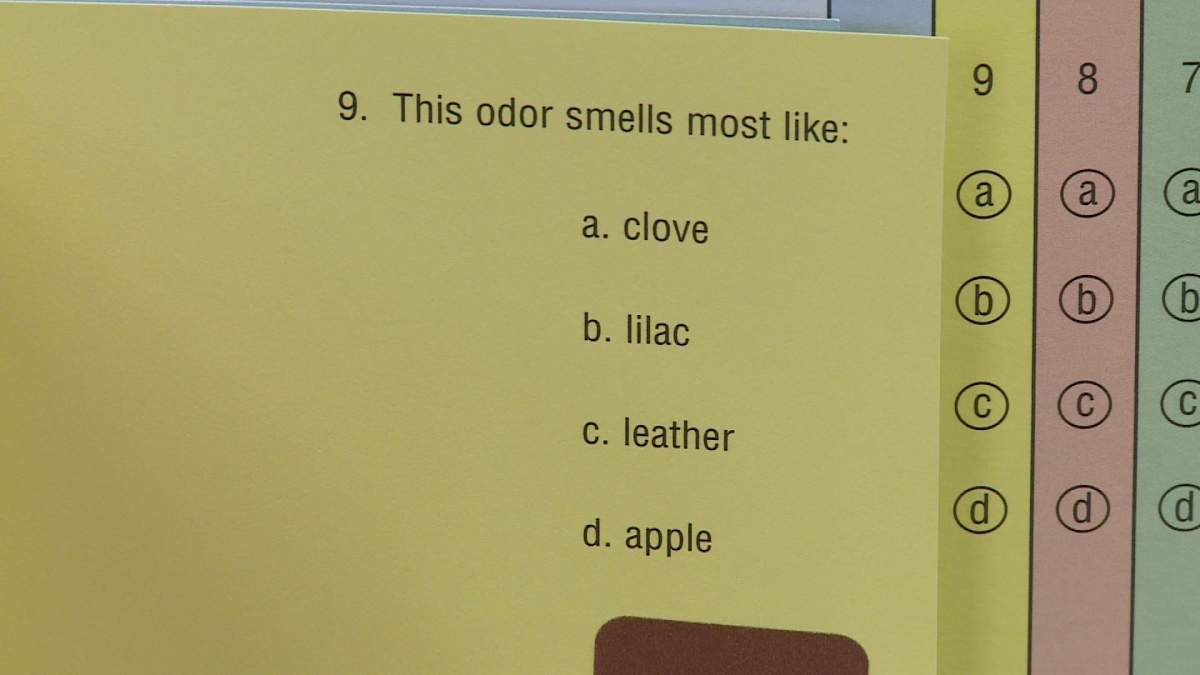 Good said the study is being conducted using a scratch and sniff test. Participants are given 40 scratch and sniff strips and they must identify the correct smell of each. Each page of scratch and sniff strips also has four potential answers for participants to choose from.
